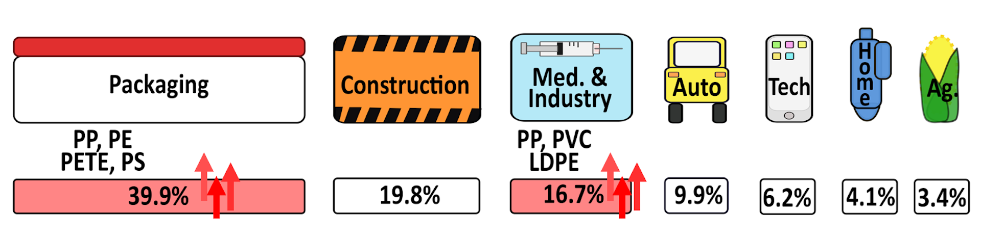However, he also reported that prices for the most-recycled categories of reclaimed plastics – PET (#1) and PE (#2 and #4) – were at 10-year lows. An influx of cheap oil has driven the raw material cost of oil-derived virgin plastics to their lowest levels in decades, outcompeting recycled feedstocks.